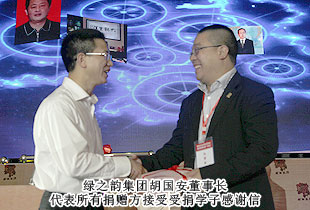 綠之韻集團胡國安董事長本次大會期間接受媒體采訪時表示,光彩事業(yè)是一項以扶貧開發(fā)為主題的光榮事業(yè)。綠之韻一直積極承擔企業(yè)的社會責任,通過參與各類公益慈善活動回報社會。希望通過自身的作為能夠帶動更多的企業(yè)、更多的人關(guān)心、關(guān)注、關(guān)愛社會弱勢群體。綠之韻愿同各企業(yè)團體,積極探索社會慈善與自身扶貧濟困、利益人群、服務社會優(yōu)良傳統(tǒng)相結(jié)合的方式,為和諧社會的建設(shè)作出更大的貢獻!
