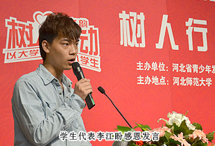 在捐贈(zèng)儀式現(xiàn)場(chǎng),河北師范大學(xué)團(tuán)委副書記姜子龍發(fā)表了講話。他在講話中表示,河北師范大學(xué)是一所具有百年歷史和光榮傳統(tǒng)的省屬重點(diǎn)大學(xué)。新中國(guó)成立以來,學(xué)校共為國(guó)家培養(yǎng)了20余萬名專業(yè)人才。今天,綠之韻集團(tuán)積極承擔(dān)社會(huì)責(zé)任,投身公益慈善,不遠(yuǎn)千里為我校貧困學(xué)子捐款捐物,對(duì)此深表感謝。希望學(xué)校廣大師生要心存感激,感激綠之韻和所有關(guān)心、幫助過你們的人,抓住機(jī)會(huì)努力學(xué)習(xí),把自己的青春、智慧和力量投入到祖國(guó)最最需要的地方去,努力將書本中學(xué)到的知識(shí)應(yīng)用到實(shí)踐中去,并在實(shí)踐中學(xué)習(xí)、在實(shí)踐中成長(zhǎng),用自己的實(shí)際行動(dòng)為國(guó)家的發(fā)展作出貢獻(xiàn),服務(wù)社會(huì),回報(bào)母校。