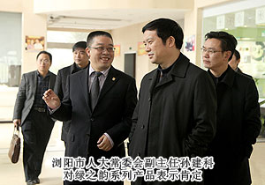 2013年1月25日上午,瀏陽市人大常委會副主任孫建科、瀏陽市人大常委會秘書長唐林軍一行蒞臨綠之韻集團(tuán)考察指導(dǎo)工作,胡國安董事長全程陪同考察組參觀了綠之韻集團(tuán)總部。