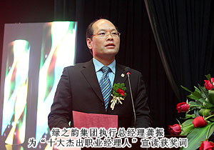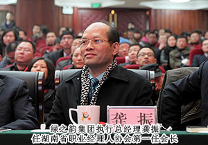 隨著商業(yè)社會的發(fā)展,職業(yè)經(jīng)理人正引領(lǐng)著未來的職業(yè)力量。在湖南,職業(yè)經(jīng)理人的迅速成長,已塑造出湖南全新的商業(yè)力量。2013年1月5日,2012湖南省職業(yè)經(jīng)理人大會暨湖南首屆優(yōu)秀職業(yè)經(jīng)理人評選頒獎典禮在長沙舉行,綠之韻集團董事長胡國安獲評2012年度湖南省最受職業(yè)經(jīng)理人尊敬的十大企業(yè)家,綠之韻集團執(zhí)行總經(jīng)理龔振作為湖南省職業(yè)經(jīng)理人協(xié)會首任會長出席會議。