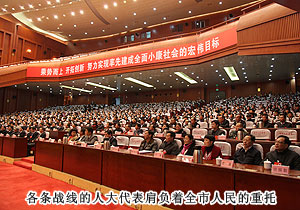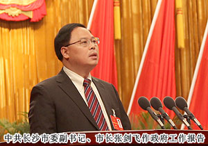長沙市人大常委會主任余合泉主持會議并宣布大會開幕。在熱烈的掌聲中,中共長沙市委副書記、市長張劍飛首先作政府工作報告,描繪了未來5年長沙的四個發(fā)展目標(biāo):建設(shè)經(jīng)濟(jì)繁榮、活力迸發(fā)的現(xiàn)代中心城市;兩型引領(lǐng)、環(huán)境優(yōu)美的生態(tài)宜居之都;開放包容、美麗獨(dú)立的國際文化名城;生活富足、社會公平的和諧幸福家園。張市長說,過去五年,在市委的堅強(qiáng)領(lǐng)導(dǎo)下,我們以科學(xué)發(fā)展觀為統(tǒng)領(lǐng),搶抓中部崛起和“兩型社會”建設(shè)的戰(zhàn)略機(jī)遇,科學(xué)應(yīng)對國際金融危機(jī)的嚴(yán)峻挑戰(zhàn),成功抗擊歷史罕見的雨雪冰凍災(zāi)害,推進(jìn)創(chuàng)業(yè)之都、宜居城市、幸福家園建設(shè),圓滿完成了市第十三屆人民代表大會第一次會議以來確定的各項(xiàng)目標(biāo)任務(wù)。2012年,全市地區(qū)生產(chǎn)總值達(dá)6510億元,年均增長14.6%,經(jīng)濟(jì)總量居省會城市第7位,五年前進(jìn)了5位;城市綜合競爭力由第24位躍升到第10位,進(jìn)入全國十強(qiáng)、全球十快。我們必須認(rèn)真貫徹落實(shí)黨的十八大精神,按照市第十二次黨代會確定的“城市國際化、產(chǎn)業(yè)高端化、城鄉(xiāng)一體化、發(fā)展兩型化、管理法治化,率先建成兩型城市和實(shí)現(xiàn)全面小康”的戰(zhàn)略目標(biāo),著力轉(zhuǎn)變發(fā)展方式、推動改革創(chuàng)新、提升城市品質(zhì)、推進(jìn)城鄉(xiāng)一體、創(chuàng)新社會管理、保障改善民生,努力建設(shè)更加富裕、秀美、文明、幸福的大長沙。