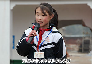 洞陽鎮(zhèn)矮橋小學蘇敏莊校長在捐贈儀式上致感謝辭,他首先代表學校全體師生,對綠之韻集團捐贈課桌椅和御寒衣服的仁義大愛表示衷心的感謝。他說,我是今年下半年才來到矮橋小學的,在接到任命之前,沒來過這所學校,當來到這里后,我被這個學校的陳舊所震撼。看到這些,我都想退出,可退出只能當想法,唯一的辦法就是全身心的投入工作,把學校建設好,并呼吁匯集社會力量捐資助學,興資辦學。綠之韻集團董事長胡國安先生、董事常務副總裁勞嘉女士,他們是具有遠見卓識而又充滿博愛心腸的慈善企業(yè)家。綠之韻集團,由小而大,聲譽日隆,這固然和他們先進的經(jīng)商理念相關,但我覺得這更和他們心宅仁厚,廣結(jié)善緣密不可分。綠之韻集團對我校捐贈桌椅、衣物、學習用品等物資,施以援手,奉獻愛心,直接受益的是我的學生們,直接受益的是洞陽鎮(zhèn)教育事業(yè)。作為一校之長的我,更要勤奮工作,不辜負綠之韻集團和社會各界對矮橋小學的厚望,創(chuàng)造出更加輝煌的業(yè)績。