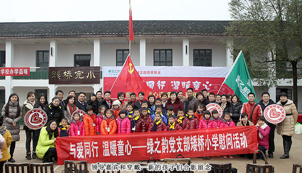 2012年12月28日上午,瀏陽市洞陽鎮(zhèn)矮橋小學充滿了歡聲笑語,綠之韻集團“與愛同行?溫暖童心”愛心課桌椅、新年新衣捐贈儀式走進了學校。洞陽鎮(zhèn)主管教育的副鎮(zhèn)長戴鳳仙、洞陽鎮(zhèn)洞陽中心學校黨支部書記李偉、綠之韻集團董事常務副總裁勞嘉、綠之韻集團黨支部書記許達仲、高級經(jīng)銷商蘇龍輝、周書明夫婦以及20名綠之韻愛心志愿者一行參與活動。