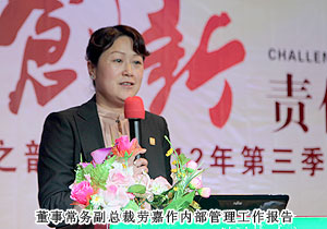 市場(chǎng)是綠之韻賴(lài)以生存的基礎(chǔ),健康持續(xù)是綠之韻發(fā)展的目標(biāo),安全穩(wěn)定是綠之韻管理的要求。會(huì)議上,綠之韻集團(tuán)常務(wù)副總裁勞嘉等全體高管分別從各自分管領(lǐng)域,針對(duì)第三季度工作進(jìn)行了回顧和總結(jié),并在接下來(lái)工作部署中表示,要真正領(lǐng)會(huì)企業(yè)的“競(jìng)合”精神,進(jìn)一步增強(qiáng)創(chuàng)新意識(shí)、發(fā)展意識(shí)、憂(yōu)患意識(shí)和服務(wù)意識(shí),在第四季度重點(diǎn)抓好業(yè)績(jī)沖刺工作、綠之韻九周年年會(huì)工作以及明年發(fā)展制定工作計(jì)劃。同時(shí),綠之韻集團(tuán)六位分公司經(jīng)理也專(zhuān)程從湖南、內(nèi)蒙古、河北、遼寧、黑龍江、吉林奔赴長(zhǎng)沙出席本次會(huì)議,他們帶來(lái)了各區(qū)域市場(chǎng)一線最前沿的情況,并就各分公司業(yè)績(jī)、內(nèi)部管理、市場(chǎng)環(huán)境等情況做出了詳細(xì)匯報(bào)?!胺N下梧桐樹(shù),引得鳳凰來(lái)”,隨著綠之韻的不斷壯大,越來(lái)越多的新鮮力量不斷加入。會(huì)議上,張潔等8位新同事在進(jìn)行自我介紹時(shí)都表示,入職以來(lái)深深感受到綠之韻企業(yè)文化的吸引力,在未來(lái)的日子會(huì)發(fā)揮自己所長(zhǎng),與綠之韻共同成長(zhǎng)。