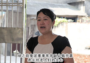 一進敬老院,在院子的陰涼處,老人們三三兩兩的,安安靜靜的坐著。看到志愿者的到來,老人們臉上都露出了燦爛的笑容。洞陽鎮(zhèn)鎮(zhèn)長戴奉仙向大家介紹了敬老院的基本情況,并對綠之韻人的愛心捐贈表示感謝。綠之韻集團董事常務副總裁勞嘉為老人們送上了愛心物資,并表示:綠之韻慈善基金將長期關注“孤寡老人”的問題,將這樣的愛心活動繼續(xù)做下去,大力弘揚中華民族尊老敬老愛老的美德,讓更多老年人擁有一個幸福的晚年。