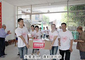 2012年8月3日上午,綠之韻黨支部又攜手瀏陽市洞陽鎮(zhèn)政府舉辦了主題為“黨旗的溫暖”的敬老院慰問活動,綠之韻集團董事常務副總裁勞嘉、黨支部書記許達仲帶領20名綠之韻黨團員代表、綠之韻愛心志愿者來到洞陽鎮(zhèn)敬老院看望孤寡老人,為老人們送上愛心物資和關懷。