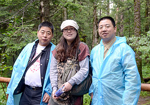 雖然因為天氣原因,著名的長白山天池在云霧繚繞中不肯在我們面前揭開真面目,但從天池傾瀉而下的長白飛瀑,轟鳴如雷,水花四濺,霧氣遮天,生動地再現(xiàn)了“疑似龍池噴瑞雪,如同天際掛飛流”的神奇境界,長白山大峽谷集奇峰、怪石、幽谷、秀水、古樹、珍草為一體,溝壑險峻狹長,溪水淙淙清幽。其博大雄渾的風(fēng)格和洪荒原始的意境,深深地震撼了大家的心魄。長白山的地下森林是由于火山運動而導(dǎo)致的大面積地層下陷形成,就如同探險小說里寫到的奇景,文字形容終覺淺,還需行到此處,才能領(lǐng)略到那種氣勢。大家穿著雨衣,吃著著名的溫泉水煮雞蛋,一路游覽一路歡笑,不亦樂乎。