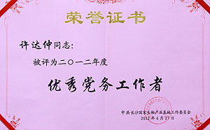 2012年6月29日,在中國共產(chǎn)黨成立91周年到來之際,長沙國家生物產(chǎn)業(yè)基地黨工委在園區(qū)召開了先進基層黨組織、優(yōu)秀黨務工作者表彰大會。會上,綠之韻黨支部憑借一系列爭先創(chuàng)優(yōu)的黨建工作榮獲“先進基層黨組織”榮譽稱號,綠之韻黨支部書記許達仲、黨支部成員羅婷分獲“優(yōu)秀黨務工作者”、“優(yōu)秀共產(chǎn)黨員”稱號。