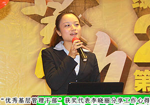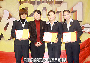 會議最激動人心的時刻屬頒獎環(huán)節(jié),為表彰過去一年里兢兢業(yè)業(yè)、踏實(shí)肯干、辛勤付出的優(yōu)秀員工,“四季度服務(wù)明星”“優(yōu)秀服務(wù)集體”“年度優(yōu)秀職員”“年度優(yōu)秀基層管理干部”“年度優(yōu)秀中層管理干部”等獎項(xiàng)相繼頒發(fā)。同時,通過全體同事的投票選舉,“陽光天使”獎項(xiàng)首次頒發(fā),樂于助人、團(tuán)結(jié)同事的辦公室李倩婷榮獲該稱號。透過每一位獲獎代表的分享,他們的工作態(tài)度:忠誠、敬業(yè)和專業(yè),無不讓人心生敬意。胡國安董事長在總結(jié)發(fā)言中表示:感謝每一位員工不離不棄的追隨,在綠之韻邁入第九個發(fā)展年頭之際,要向每一位同仁道一聲誠摯的感謝。綠之韻在2011年從各方面夯實(shí)著基礎(chǔ),為2012年的突破做好了充足的準(zhǔn)備,“蓄”為積淀,“力”為爆發(fā),只要全體綠之韻人上下一心,同心同步,我們定能龍騰海天,再創(chuàng)新高!