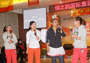 新春團(tuán)拜會是綠之韻每一位員工年終狂歡的舞臺,集團(tuán)領(lǐng)導(dǎo)、分公司、下屬基地的代表們歡聚一堂,各部門全員參與,準(zhǔn)備了幽默的小品、創(chuàng)意的整蠱、歡動的舞蹈及各類令人捧腹的節(jié)目,熱熱鬧鬧迎新春!龍騰虎躍2012,我們來了!