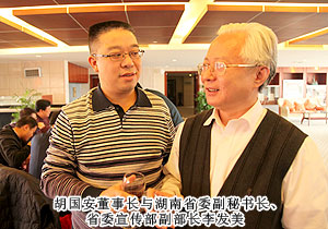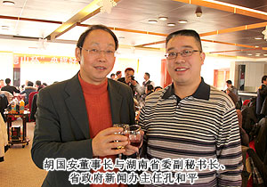 2011年12月16日上午,“央媒?湘企”深化“走轉(zhuǎn)改”座談會暨“御品德山懷”央媒好新聞頒獎儀式在長沙普瑞溫泉大酒店舉行,來自中央70多家新聞單位駐湘記者站的100余名媒體負責人、記者、近20名湘企代表匯聚一堂,共同為深化新聞單位“走基層、轉(zhuǎn)作風、改文風”活動進行探討。原湖南省政協(xié)主席、中央新聞單位駐湘記者分會榮譽會長王克英,湖南省委副秘書長、省委宣傳部副部長李發(fā)美,省委副秘書長、省政府新聞辦主任孔和平等領(lǐng)導出席儀式并為獲獎?wù)哳C獎。綠之韻集團胡國安董事長應(yīng)邀出席會議并與在座媒體代表及各企業(yè)家展開座談討論。