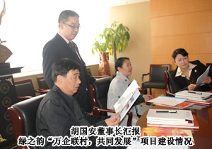 2011年11月23日,長沙市委統(tǒng)戰(zhàn)部常務(wù)副部長劉映群,市委督辦專員、市委統(tǒng)戰(zhàn)部調(diào)研員吳忠祥一行蒞臨綠之韻集團考察調(diào)研,就綠之韻“萬企聯(lián)村,共同發(fā)展”省級優(yōu)秀示范項目建設(shè)進行工作指導(dǎo),綠之韻集團董事長胡國安、董事常務(wù)副總裁勞嘉陪同考察。