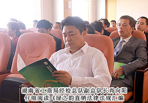 為紀(jì)念國(guó)務(wù)院頒布《直銷管理?xiàng)l例》和《禁止傳銷條例》實(shí)施六周年,進(jìn)一步規(guī)范直銷市場(chǎng)監(jiān)管,加強(qiáng)法律法規(guī)的宣傳力度,確保綠之韻做到規(guī)范自律、永續(xù)發(fā)展,2011年10月22日上午,在湖南省工商部門的指導(dǎo)下,綠之韻集團(tuán)紀(jì)念兩個(gè)《條例》學(xué)習(xí)會(huì)成功召開。湖南省工商行政管理局經(jīng)檢總隊(duì)副總隊(duì)長(zhǎng)肖向陽(yáng)擔(dān)任主講嘉賓,綠之韻集團(tuán)董事常務(wù)副總裁勞嘉、總裁助理兼企劃教育總監(jiān)何健與總部員工、優(yōu)秀經(jīng)銷商、低碳事業(yè)部代表共同參加了此次學(xué)習(xí)會(huì)議。
