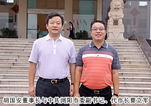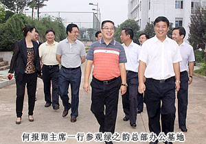 2011年9月8日上午,為更好地指導(dǎo)綠之韻集團“萬企聯(lián)村,共同發(fā)展——湖南益陽萬畝中藥材種植基地”省級優(yōu)秀示范項目建設(shè),湖南省政協(xié)副主席、省工商聯(lián)主席何報翔在長沙市政協(xié)副主席、長沙市工商聯(lián)主席彭繼球,中共瀏陽市委副書記、代市長曹立軍等陪同下,蒞臨綠之韻集團考察調(diào)研。同日下午,繼上次陪同何報翔主席前往郴州宜章考察縣域經(jīng)濟的發(fā)展,湖南省工商聯(lián)常委、綠之韻集團董事長胡國安再次陪同何報翔主席前往瀏陽調(diào)研非公經(jīng)濟發(fā)展。