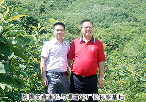 2011年6月22日,綠之韻集團(tuán)胡國(guó)安董事長(zhǎng)在綠之韻湖南迪博制藥生產(chǎn)廠廠長(zhǎng)譚雪軍、董事長(zhǎng)助理戴曉彥等陪同下,親赴綠之韻益陽(yáng)中藥材基地考察。胡國(guó)安董事長(zhǎng)一行深入林間山地,實(shí)地察看了苗圃生長(zhǎng)情況,并向基地負(fù)責(zé)人詳細(xì)了解了基地建設(shè)進(jìn)程。