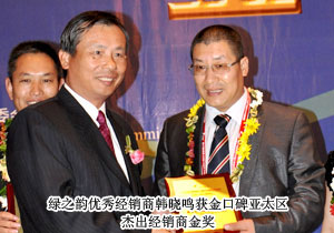 2011年6月13日,第七屆世界華人直銷大會金口碑頒獎盛典在印尼巴厘島隆重開幕。金口碑獎被譽(yù)為直銷行業(yè)的奧斯卡,代表了全球直銷人的至高榮譽(yù)。至今為止,金口碑頒獎盛典已成功舉辦六屆,造就了一批在直銷領(lǐng)域杰出的代表人物,同時也整合了一批具有創(chuàng)新精神和典范作用的精選案例,傳承發(fā)揚(yáng)金口碑精神。綠之韻集團(tuán)董事常務(wù)副總裁勞嘉、綠之韻國際集團(tuán)東南亞股份有限公司運(yùn)營副總裁李繼前、綠之韻沙棘產(chǎn)業(yè)事業(yè)部總裁王鐵柱、副總裁廖磊以及綠之韻優(yōu)秀高級經(jīng)銷商受邀出席此次盛會。綠之韻集團(tuán)榮獲十大最具品牌價值直銷企業(yè);綠之韻華興、匯誠系統(tǒng)榮獲卓越系統(tǒng)獎。綠之韻優(yōu)秀經(jīng)銷商谷方彤、韓曉鳴獲金口碑亞太區(qū)杰出經(jīng)銷商金獎,綠之韻沙棘產(chǎn)業(yè)事業(yè)部沙棘系列產(chǎn)品獲十佳名牌產(chǎn)品。