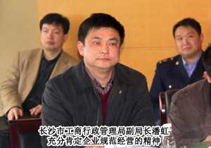 湖南省工商行政管理局經(jīng)檢總隊(duì)副總隊(duì)長(zhǎng)肖向陽(yáng)、長(zhǎng)沙市工商行政管理局副局長(zhǎng)潘虹也分別站在綠之韻集團(tuán)總部所轄監(jiān)管部門的立場(chǎng),將綠之韻獲得直銷牌照以及八年發(fā)展過(guò)程中為創(chuàng)業(yè)就業(yè)和稅收等方面作出的貢獻(xiàn)向考察組作了講解,并號(hào)召大家響應(yīng)湖南省工商行政管理局劉國(guó)湘局長(zhǎng)“以扶為重,以發(fā)展為先” 的號(hào)召,在監(jiān)管過(guò)程中做好企業(yè)服務(wù)工作。