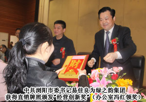 2011年3月10日,長沙國家生物產(chǎn)業(yè)基地經(jīng)濟(jì)工作會(huì)議在瀏陽市行政中心隆重召開。中共長沙市委常委、瀏陽市委書記易佳良、長沙市人民政府副市長何寄華、湖南省科技廳副廳長羅亞軍等省市級(jí)政府領(lǐng)導(dǎo)出席會(huì)議并發(fā)表重要講話。綠之韻集團(tuán)榮獲“2010年度稅收過千萬企業(yè)”“經(jīng)營創(chuàng)新獎(jiǎng)”“目標(biāo)管理一等獎(jiǎng)”“統(tǒng)計(jì)工作先進(jìn)單位” 多項(xiàng)殊榮;綠之韻迪博制藥有限公司在2010年獲評“湖南省著名商標(biāo)”獲得“名牌產(chǎn)品獎(jiǎng)”。綠之韻員工陳英、易利群榮獲“2010年度統(tǒng)計(jì)工作先進(jìn)個(gè)人”。綠之韻集團(tuán)董事長胡國安出席領(lǐng)獎(jiǎng)并接受產(chǎn)業(yè)基地下達(dá)的2011年目標(biāo)管理任務(wù)書。