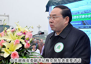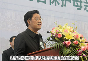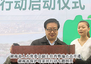 共青團(tuán)湖南省委書記張值恒主持儀式。啟動儀式上,由大學(xué)生、中小學(xué)生、青年企業(yè)家、青年農(nóng)民、青年工人、青年科技人員組成的6個代表方陣,分別莊嚴(yán)地進(jìn)行了保護(hù)母親河綠色承諾。湖南省人民政府副秘書長石華清為保護(hù)母親河行動青少年生態(tài)監(jiān)護(hù)站和監(jiān)督崗授牌;湖南省委副秘書長龔文密為汪涵、曾軼可、王櫟鑫等行動公益大使頒發(fā)聘書;湖南省政協(xié)副主席武吉海為環(huán)保社團(tuán)聯(lián)盟授旗;湖南省人大常委會副主任肖雅瑜點擊開通湖南省保護(hù)母親河行動專題網(wǎng)頁。儀式最后,汪涵等公益大使接過梅克保副書記授予的環(huán)保接力棒跑出會場,拉開了湖南省保護(hù)母親河環(huán)保接力活動的序幕,隨后140名接力選手代表全省14個市州環(huán)繞橘洲公園先后接力。