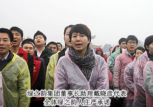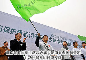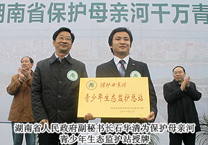 2011年3月5日,長沙橘子洲公園青年毛澤東藝術(shù)雕塑廣場上人聲鼎沸,彩旗飄揚,湖南省保護(hù)母親河(湘江)千萬青少年綠色承諾行動啟動儀式隆重舉行。中共湖南省委副書記梅克保、湖南省人大常委會副主任肖雅瑜、湖南省政協(xié)副主席武吉海等領(lǐng)導(dǎo)出席啟動儀式。綠之韻集團(tuán)董事長胡國安身為湖南省青年企業(yè)家協(xié)會副會長,積極響應(yīng)此次活動,委派董事長助理戴曉彥代表綠之韻全體員工及經(jīng)銷商出席并莊重許下保護(hù)母親河的綠色承諾。湖南省保護(hù)母親河領(lǐng)導(dǎo)小組各成員單位、青少年代表和中央、省、市新聞界朋友近千人共同參與。