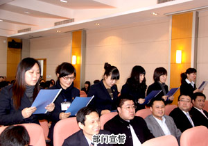 會(huì)議首先由綠之韻集團(tuán)董事常務(wù)副總裁勞嘉作2011年內(nèi)務(wù)管理工作計(jì)劃安排及工作動(dòng)員;緊接著,執(zhí)行總經(jīng)理龔振就2011年市場(chǎng)工作進(jìn)行統(tǒng)一部署;同時(shí),市場(chǎng)營(yíng)銷中心總經(jīng)理劉彥明及企劃教育總監(jiān)何健分別就各自所管轄的部門作2011年的工作重點(diǎn)及詳細(xì)計(jì)劃講解,四位領(lǐng)導(dǎo)均表示,一定會(huì)帶領(lǐng)所轄部門,為完成公司2011年年度目標(biāo)而全力以赴!此外,三位員工代表也紛紛上臺(tái)發(fā)言,表決心,表信心!