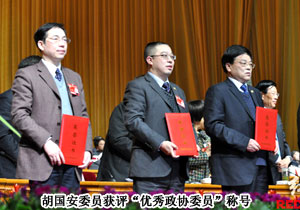 根據(jù)《關(guān)于湖南省政協(xié)委員履行職責(zé)的辦法(試行)》“在每一屆政協(xié)的第三、第五年,按照委員總數(shù)的8%評選優(yōu)秀政協(xié)委員”的要求,省政協(xié)將在年底評選優(yōu)秀省政協(xié)委員。優(yōu)秀省政協(xié)委員評選條件為:積極主動參加政協(xié)活動,并在其中起骨干作用;履行職責(zé)成果顯著,建言獻(xiàn)策轉(zhuǎn)化率高;為地方經(jīng)濟社會發(fā)展作出的貢獻(xiàn)較大。評選采取量化的辦法,依據(jù)政協(xié)職能和委員職責(zé),設(shè)置了參加政協(xié)例會情況、撰寫提案及辦理情況、社情民意采用及轉(zhuǎn)化情況、參加調(diào)研情況等9個計分項目。擔(dān)任政協(xié)委員期間,胡國安委員先后提交了《我省民企應(yīng)對金融危機的對策及建議》《關(guān)于下調(diào)武廣高鐵票價》等多份關(guān)系經(jīng)濟發(fā)展及社會民生的提案,并多次深入一線調(diào)研,實實在在了解民眾,及時提出建議,最終獲評“優(yōu)秀政協(xié)委員”榮譽稱號。湖南衛(wèi)視、湖南經(jīng)視、紅網(wǎng)、《瀟湘晨報》《長沙晚報》《人民政協(xié)報》等多家權(quán)威媒體對胡國安委員的先進事跡進行了報道!