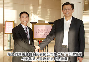 為貫徹湖南省委、省政府加快醫(yī)藥產(chǎn)業(yè)發(fā)展的相關(guān)指示精神,長沙國家生物產(chǎn)業(yè)基地與湖南益陽安化縣人民政府達成合作協(xié)議,正式啟動益陽安化中藥產(chǎn)業(yè)園建設項目。2010年12月22日,長沙國家生物產(chǎn)業(yè)基地管理委員會就開發(fā)與建設益陽安化中藥產(chǎn)業(yè)園召開專題會議,綠之韻集團董事長胡國安出席此次會議,并就綠之韻集團在未來五年斥資億元建設益陽安化中藥材種植基地及原材料提取中心與安化縣人民政府、長沙國家生物產(chǎn)業(yè)基地正式簽定合作協(xié)議,成為湖南省中醫(yī)藥產(chǎn)業(yè)發(fā)展以及國家發(fā)改委與商務部重點扶持項目。