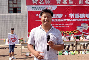 勝利鄉(xiāng)是泰來(lái)縣比較有名的貧困鄉(xiāng),勝利中心學(xué)校更是在1998年的洪水中遭受了重創(chuàng),學(xué)生們渴望讀到好的課外讀物,渴望掌握更多教科書(shū)以外的知識(shí),但是在此之前對(duì)于這里的孩子來(lái)說(shuō)只能是奢望。今天,孩子們終于能夠圓了擁有一個(gè)圖書(shū)館的夢(mèng)想,綠之韻的叔叔阿姨們給他們帶來(lái)了夢(mèng)寐以求的豐富圖書(shū)。從此,孩子們便可以在整潔的流動(dòng)圖書(shū)館閱讀心愛(ài)的課外書(shū)籍。