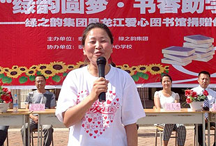 此次捐助活動(dòng)上,來(lái)自各地的綠之韻優(yōu)秀經(jīng)銷商為學(xué)校師生帶來(lái)了精彩的《綠之韻戰(zhàn)歌》表演,分公司經(jīng)理孫鵬程代表公司致辭,并出席授牌儀式。綠之韻集團(tuán)高級(jí)經(jīng)銷商徐華在捐贈(zèng)儀式上發(fā)表感言,她表示:慈善一直是綠之韻人的一份責(zé)任,孩子是祖國(guó)的未來(lái)和希望,圖書(shū)是孩子們密不可分的伙伴,未來(lái)還將與黑龍江市場(chǎng)的伙伴一起以慈善活動(dòng)為己任,讓更多的孩子有機(jī)會(huì)多讀書(shū)、讀好書(shū),不能讓貧困成為孩子們成功路上的“絆腳石”。中心學(xué)校的孩子們用一支舞蹈《感恩的心》來(lái)回饋這些有充滿愛(ài)心的叔叔阿姨。