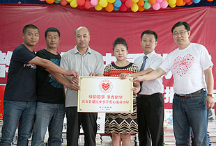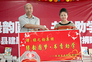 本次活動在綠之韻戰(zhàn)歌的舞蹈中拉開了序幕,綠之韻集團高級經(jīng)銷商徐華女士代表綠之韻慈善基金向愛心助學基地捐贈10萬元書籍,這也標志著“綠之韻愛心流動圖書館”正式落戶慶安。會上,徐華女士發(fā)表了捐贈感言:“孩子是祖國的未來,不能讓孩子因為貧困而失去了希望,我們將盡自己的能力多為孩子們做一些事?!?0余位經(jīng)銷商代表親自將嶄新的書籍和愛心助學金交到孩子們的手中,孩子們也為敬愛的叔叔、阿姨們戴上鮮艷的紅領巾,借此表達他們的無限感激之情。