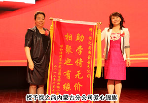 一直以來(lái),綠之韻內(nèi)蒙古的愛(ài)心經(jīng)銷商們總是活躍在各項(xiàng)公益慈善中,將回饋社會(huì)、撒播愛(ài)心作為永恒不變的主題。慶典現(xiàn)場(chǎng),王連坤、郝建兵、張聞?dòng)ⅰ埪勅A、張弘菲、劉美成、周淑梅、大高娃、閆素琴、喬桂英、丁文慧、秦慧、黃麗、楊玉蓮14名愛(ài)心經(jīng)銷商為呼和浩特市回民區(qū)通道街小學(xué)捐贈(zèng)善款兩萬(wàn)元,為孩子們建立流動(dòng)圖書(shū)館,用愛(ài)托起孩子們茁壯成長(zhǎng)的藍(lán)天。副總經(jīng)理何健為這14名愛(ài)心代表頒發(fā)了“2012年度綠之韻愛(ài)心慈善大使捐款榮譽(yù)證書(shū)”,可愛(ài)的孩子們也送上了精心準(zhǔn)備的詩(shī)歌朗誦和舞蹈表演。愛(ài)心代表王連坤表示:很高興能為這次助學(xué)活動(dòng)盡一份力,同時(shí)也希望更多的人加入到慈善事業(yè)中,將承載著愛(ài)心的“接力棒”永遠(yuǎn)傳遞下去。