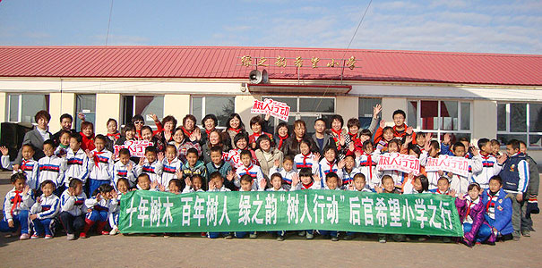 2010年11月5日,在吉林省松原市 “綠之韻后官希望小學”建成三周年之際,吉林分公司經(jīng)理劉曉桅、外事主任胡榮軍與希望小學的捐建者劉艷波、班中巖、楊秀英、楊淑珍、吳麗娟,2010年“樹人行動”捐助者于勤、郭凱瑜、宋會萍、張翠芳、李淑芹,以及東北師范大學受到資助的大學生等,回到希望小學進行了回訪慰問和支教活動?!缎挛幕瘓蟆穼Ρ敬位钤L活動做了跟蹤報道。
