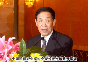 中央電視臺主持人趙瑋擔(dān)任主持。會議由九屆全國人大常委會副委員長周光召宣布開幕,并由第八屆全國工商聯(lián)副主席,中國民營企業(yè)家協(xié)會會長姜永濤致開幕詞。姜會長指出:我國民營企業(yè)在改革開放中迅速發(fā)展,民營經(jīng)濟已經(jīng)成為我國國民經(jīng)濟的重要組成部分,在國家的經(jīng)濟、社會、精神、文化等建設(shè)中,發(fā)揮了不可替代的作用。經(jīng)濟專家認為,“十二五”規(guī)劃推動自主創(chuàng)新和技術(shù)進步,大力發(fā)展高科技、新能源、綠色經(jīng)濟、低碳經(jīng)濟和文化產(chǎn)業(yè)。這對我國的民營企業(yè)來說,既是新的挑戰(zhàn),也是新的機遇。同時“新36條”的出臺,從制度創(chuàng)新角度推動民營經(jīng)濟和民間資本的發(fā)展,為民營企業(yè)提供了非常有利的政策保障和市場機遇。他們認為自主創(chuàng)新能力是國家競爭力的核心,也是民營企業(yè)競爭力的核心,只有確實增強企業(yè)的創(chuàng)造能力,才能建設(shè)成真正創(chuàng)新型的企業(yè)。