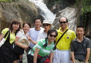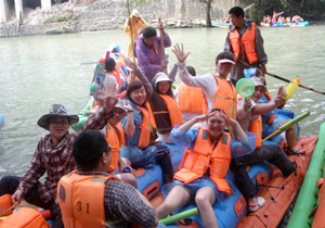 旅游途中,不僅參觀了霧漫小東江、猴古山瀑布、東江大壩等景點,大伙也嘗到了東江湖特產(chǎn)的各色美味,在美麗的景色前爭相合影,把綠之韻人的快樂和輕松留在了他鄉(xiāng)。此次旅游的目的地東江漂流是最刺激的項目(全長28公里,落差75米,途經(jīng)108個急險灘),同事們積極購置了水槍、水瓢、水盆、雨衣等備戰(zhàn)工具,當大家到達起漂點,邊穿救生衣邊潑水,一場激烈的水戰(zhàn)在此起彼伏的尖叫和歡笑聲中拉開序幕。順流而下,河段兩岸青山疊翠,珍稀花草爭妍斗艷,原始森林相擁對峙,怪石林立,水質(zhì)清澈,給人以探幽、獵奇、拾趣之樂,同事們盡情地領略著博浪飛舟的激越、高歌揮槳的豪放。