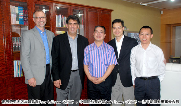 考察團(tuán)一行先后參觀了湖南綠之韻迪博制藥有限公司及綠之韻總部辦公大樓,整潔的生產(chǎn)線、舒適的辦公環(huán)境以及獨(dú)特的企業(yè)文化得到了國(guó)際友人的贊譽(yù)。座談會(huì)上,麥當(dāng)勞亞太區(qū)加盟總裁Tony LaRocco向胡國(guó)安董事長(zhǎng)詳細(xì)咨詢了綠之韻整合分銷(xiāo)經(jīng)營(yíng)模式的現(xiàn)狀和優(yōu)勢(shì),并研讀了綠之韻加盟專(zhuān)賣(mài)店管理手冊(cè),與胡國(guó)安董事長(zhǎng)針對(duì)麥當(dāng)勞在湖南地區(qū)未來(lái)的發(fā)展和管理方向展開(kāi)討論。座談會(huì)在友好、熱情的氛圍中進(jìn)行,胡國(guó)安董事長(zhǎng)表示:麥當(dāng)勞在全球的飛速發(fā)展有目共睹,企業(yè)之間互相學(xué)習(xí),借鑒經(jīng)驗(yàn),對(duì)企業(yè)的發(fā)展大有裨益。綠之韻集團(tuán)今后將密切與知名企業(yè)進(jìn)行互訪,在不斷學(xué)習(xí)中提升綠之韻的品牌競(jìng)爭(zhēng)力。