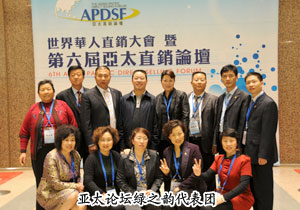 2010年4月6日-8日,素有“直銷界的奧斯卡盛宴”之稱的第六屆亞太直銷論壇在臺灣臺北國際會議中心隆重召開。本屆論壇受到了業(yè)界的關(guān)注及當?shù)卣拇罅χС郑瑑砂独硎聠挝还餐帧秲砂稊y手,共創(chuàng)新機》之鑰,為大會活動揭開序幕,大會協(xié)辦單位伯仲文教基金會董事長、中國國民黨榮譽主席吳伯雄先生親臨開幕式并致詞,來自日本、中國、港澳、馬來西亞、印尼、新加坡等12個國和地區(qū)行業(yè)人士;數(shù)十位專家學(xué)者、上百位企業(yè)高管參加了會議。 綠之韻集團董事長胡國安、董事常務(wù)副總經(jīng)理勞嘉、綠之韻迪博制藥生產(chǎn)廠廠長譚雪軍以及綠之韻高層分銷商代表參加了此次活動。作為本次論壇活動的VIP嘉賓,胡國安董事長受到了中國國民黨榮譽主席吳伯雄先生的親切接見。