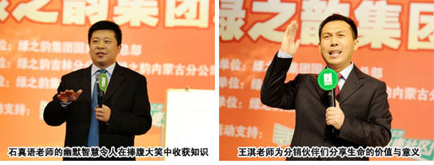 來自祖國的大江南北的綠之韻精英們,中午只做了片刻的休息,仍然保持著積極的狀態(tài)投入到下午的峰會(huì)。著名銷售專家,營銷團(tuán)隊(duì)建設(shè)管理專家,營銷界的“瘋狂訓(xùn)練大師”、“培訓(xùn)界的趙本山”石真語以其幽默的演講風(fēng)格、敏捷的思維闡述了現(xiàn)代社會(huì)的營銷先進(jìn)理念和方法:從人生需要規(guī)劃、世界需要營銷、業(yè)績(jī)決定一切三個(gè)方面,為廣大分銷商開拓市場(chǎng)打開銷售渠道提供了積極的指導(dǎo)。和諧成功學(xué)創(chuàng)始人、兩性關(guān)系疏導(dǎo)專家、體驗(yàn)式教練技術(shù)杰出教練王淇在現(xiàn)場(chǎng)通過游戲互動(dòng)與體驗(yàn)課程分享事業(yè)成功所必須懂得的智慧和付出的價(jià)值。圍繞著綠之韻事業(yè)發(fā)展所帶來的和諧情感和企業(yè)展示出來的希望和力量進(jìn)行了動(dòng)情演講。綠之韻集團(tuán)總部的員工也在整場(chǎng)峰會(huì)中表演了《相信我們會(huì)創(chuàng)造奇跡》、《在路上》等精彩節(jié)目。最后,綠之韻集團(tuán)董事長(zhǎng)胡國安先生就如何達(dá)到“共贏”、如何帶動(dòng)“就業(yè)”、如何推動(dòng)綠之韻事業(yè)穩(wěn)定快速成長(zhǎng)發(fā)表講話。胡總在發(fā)言中說:回顧公司從小到大,從無到有,是因?yàn)橛辛讼嘈帕肆α浚庞辛怂芯G之韻人夢(mèng)想成真的今天。我們應(yīng)該相信自己,相信自己的選擇和實(shí)力,相信自己成長(zhǎng)中所有的經(jīng)歷都是我們積蓄力量實(shí)現(xiàn)共贏的過程。