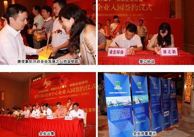 2009年9月27日,湖南環(huán)保科技園長沙國際企業(yè)中心企業(yè)簽約入園儀式在湖南長沙運(yùn)達(dá)•喜來登大酒店隆重舉行。入園簽約儀式得到了省市區(qū)領(lǐng)導(dǎo)和有關(guān)部門大力支持,各級領(lǐng)導(dǎo)、長沙銀行、市青年聯(lián)合會及意向企業(yè)代表匯聚一堂,共同見證這次具有重要里程碑意義的盛會。綠之韻集團(tuán)常務(wù)副總經(jīng)理勞嘉女士、湖南綠之韻保健日用品有限公司執(zhí)行總經(jīng)理孫立農(nóng)先生作為此次入園十八家企業(yè)代表出席本次大會,并簽訂入園協(xié)議。