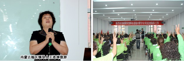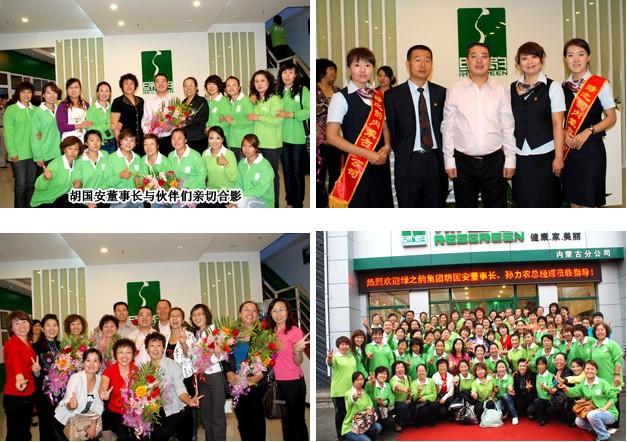 在分公司經(jīng)理侯立新、內(nèi)蒙古地區(qū)領(lǐng)導(dǎo)人王連坤以及幾位主要骨干的陪同下,胡董一行參觀了分公司,分別聽(tīng)取了分公司負(fù)責(zé)人及市場(chǎng)領(lǐng)導(dǎo)人的工作匯報(bào)與下一步市場(chǎng)的規(guī)劃、展望與運(yùn)營(yíng)等,對(duì)分公司的籌備及運(yùn)營(yíng)給予了充分的肯定和贊許。參觀分公司之后,又舉行了100多位內(nèi)蒙古地區(qū)精英骨干會(huì)議。王連坤老師代表內(nèi)蒙古地區(qū)分銷(xiāo)伙伴回顧了6年綠之韻在內(nèi)蒙古的發(fā)展,至動(dòng)情處熱淚盈眶,激動(dòng)之情溢于言表。