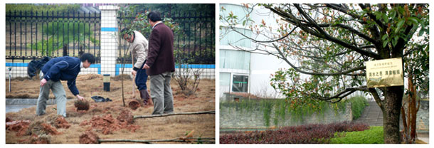 在大家的齊心合力下,又一片綠色的小樹林成長起來。在返回公司總部辦公樓的途中,我們還看到,為紀念綠之韻集團成立三周年時種下的掛有“飲水思源”牌匾的樹在春雨的澆灌下顯得更加欣欣向榮。