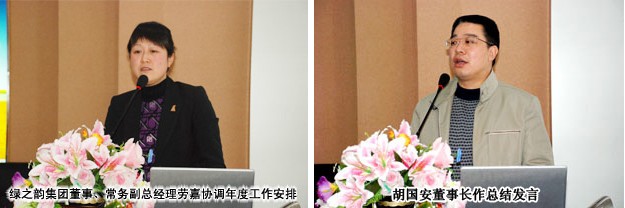 在會上,新員工代表張薇以“綠之韻成就夢想”為題作了發(fā)言。隨后,龔總?cè)骊U述09年公司在教育培訓(xùn)、市場拓展以及根據(jù)地、分公司建設(shè)等方面的工作任務(wù)。接著,勞總對“2•28高峰會”的各項籌備工作作了說明,提出了09年公司在六個重點方面的業(yè)績指標(biāo),并要求全體員工增強責(zé)任意識,加強執(zhí)行力。