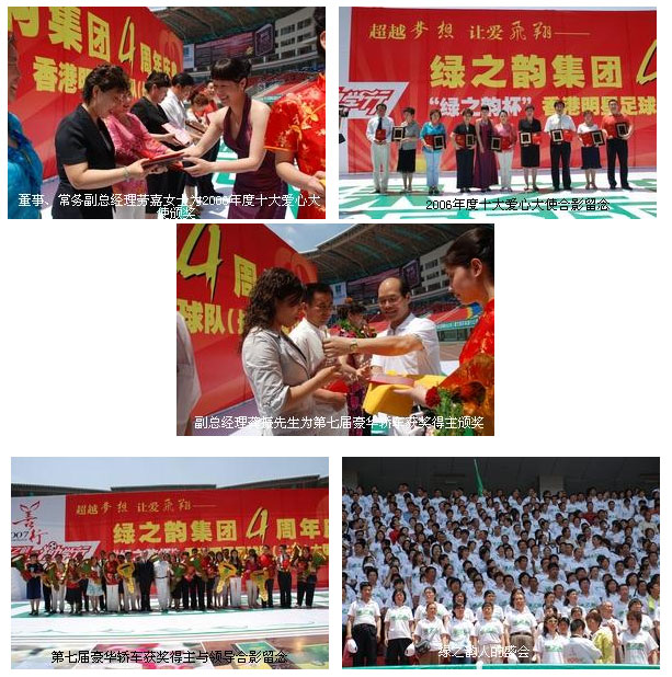 陽光燦爛的五月,一進入賀龍體育中心的慶典現(xiàn)場,身為綠之韻人的自豪感立刻油然而生??扇菁{四萬多人的體育中心處處體現(xiàn)出設計的大氣磅礴,場內綠之韻的大型宣傳畫、橫幅、廣告牌、彩旗在館內的四面八方迎風招展,歡迎著全體綠之韻家人們的到來。正中心的場地上以“超越夢想,讓愛為翔”為主題的舞臺,宛如一艘即將遠航的巨輪,承載著屬于綠之韻人的愛與夢想。