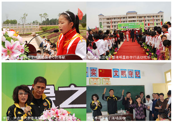 隨后,影視紅星米雪小姐、尹志強先生不顧一路奔波勞頓立刻前往綠之韻老屋希望學校出席“綠之韻集團牽手香港明星助學行”活動,同時出席此次活動的還有瀏陽市副市長劉明理先生、湖南省青少年發(fā)展基金會秘書長劉鳳娟女士、洞陽鎮(zhèn)政府鎮(zhèn)長鄒述慶先生、洞陽鎮(zhèn)黨委書記高志士先生、瀏陽市教育局局長肖長禮先生、綠之韻集團董事長胡國安先生、綠之韻集團董事、執(zhí)行總經(jīng)理陳社行先生、綠之韻集團董事、常務副總經(jīng)理勞嘉女士、綠之韻工業(yè)園希望小學校長羅玉明先生以及湖南公共頻道、瀏陽電視臺等數(shù)家新聞媒體的記者。