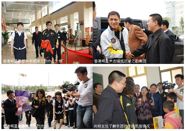 2007年4月26日上午十點,綠之韻全體員工在綠之韻辦公大樓用最熱烈的歡迎儀式迎接到了來自香港明星足球隊的三位明星代表:黃日華、米雪、尹志強參觀綠之韻集團。