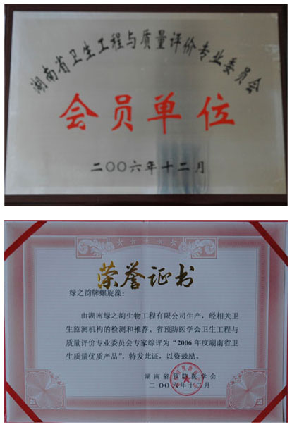 好消息:綠之韻螺旋藻憑借質(zhì)高品優(yōu)的優(yōu)特性經(jīng)過相關(guān)衛(wèi)生監(jiān)測機構(gòu)的檢測和推薦,被湖南省預(yù)防醫(yī)學會衛(wèi)生工程與質(zhì)量評價專業(yè)委員會專家綜評為“2006年度湖南省衛(wèi)生質(zhì)量優(yōu)質(zhì)新產(chǎn)品”。 并且,綠之韻公司被聘為湖南省預(yù)防醫(yī)學會衛(wèi)生工程與質(zhì)量評價專業(yè)委員會“會員單位”
