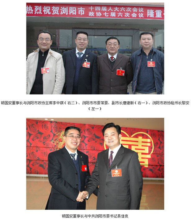 2007年1月20日至22日,政協(xié)瀏陽(yáng)市第七屆委員會(huì)第六次會(huì)議在瀏陽(yáng)市歐陽(yáng)予倩大劇院順利召開。瀏陽(yáng)市政協(xié)委員、綠之韻集團(tuán)董事長(zhǎng)兼總裁胡國(guó)安先生全程參與了此次會(huì)議。