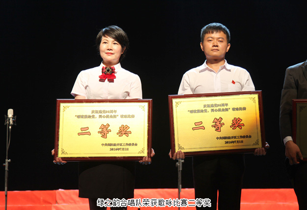 大會最令人熱血沸騰的環(huán)節(jié)是慶祝建黨95周年歌詠比賽的舉辦?!陡璩鎳贰ⅰ冻礁杞o黨聽》、《黨啊,親愛的媽媽》等一支支弘揚(yáng)偉大祖國繁榮昌盛的主旋律在金陽唱響。綠之韻合唱隊(duì)在集團(tuán)黨總支帶領(lǐng)下以飽滿的熱情和嘹亮的歌聲表演了《四渡赤水出奇兵》,積極進(jìn)取、奮發(fā)向上的精神風(fēng)貌感染了現(xiàn)場每一個人,并最終榮獲歌詠比賽二等獎。