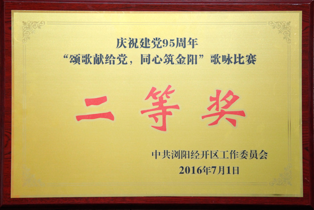 2016年7月1日,瀏陽經(jīng)開區(qū)慶祝建黨95周年表彰大會暨合唱比賽在園區(qū)金陽文化藝術(shù)中心隆重召開。全體黨委領(lǐng)導(dǎo)、機(jī)關(guān)各支部、各非公經(jīng)濟(jì)黨組織以及園區(qū)各企業(yè)代表團(tuán)等參加會議。會上,綠之韻集團(tuán)黨總支部憑借出色的黨建工作再次被評為“先進(jìn)基層黨組織”, 綠之韻黨總支副書記許達(dá)仲被評為“優(yōu)秀黨務(wù)工作者”,公司員工黃姣、楊丹被評為園區(qū)“優(yōu)秀共產(chǎn)黨員”。