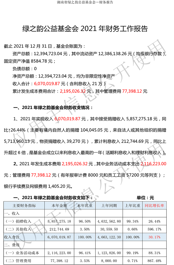 湖南省綠之韻公益基金會2021年財務(wù)報告