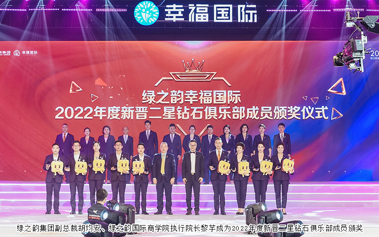 在幸福的道路上,有這樣一群堅(jiān)實(shí)的守護(hù)者,他們心懷熱愛,步履不停,用夢想融合新生,用榮耀成就巔峰,他們是為幸福奮斗的高階精英,他們是本次進(jìn)入鉆石俱樂部的最強(qiáng)王者。勇者無畏,破繭成蝶,迎來屬于他們的鉆石榮耀之旅。綠之韻集團(tuán)董事、總裁勞嘉,綠之韻集團(tuán)副總裁胡均安,綠之韻國際商學(xué)院執(zhí)行院長黎芋成,綠之韻國際商學(xué)院常務(wù)副院長陳敏,綠之韻國際商學(xué)院副院長、特聘教授侯俊霞分別為綠之韻幸福國際2022年度新晉一星、二星、三星鉆石俱樂部成員頒獎,獲獎?wù)哧悤詵|、蘇裕涵、林景云分享獲獎感言。